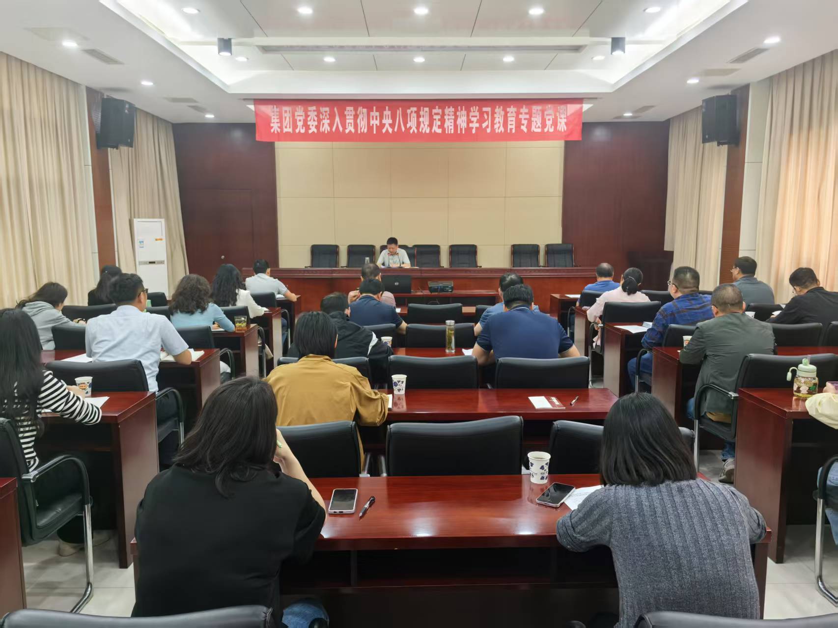 4月21日,集團黨委舉辦深入貫徹中央八項規定精神學習教育專題黨課暨“清風課堂”活動,集團黨委書記王廷睿授課。